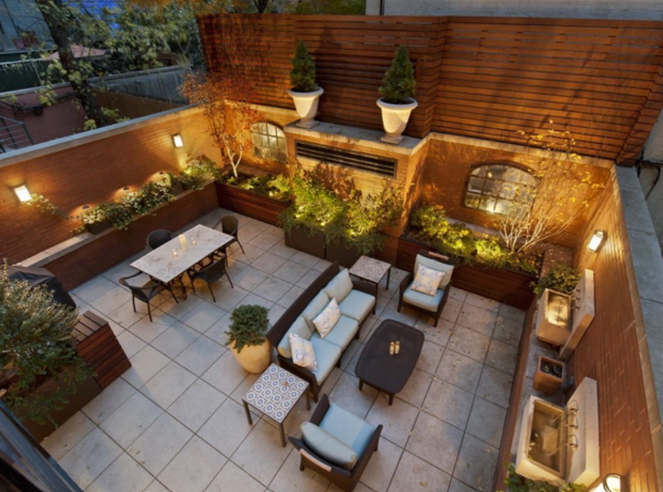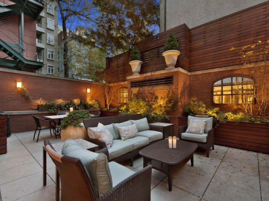 There is a large and completely private paved terrace directly located outside kitchen/living room and at that level. The 650 square foot terrace offers new, all weather upholstered Gloster furniture, dining seating for 6 at an antique, in-laid Roman table, and a professional landscape. Matching water fountains and lights add a sense of tranquility and peace to the setting.